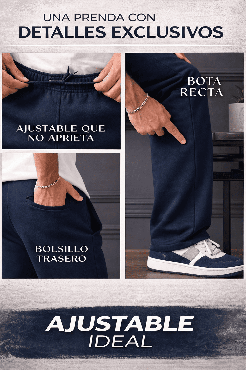 No. El corte es cómodo y moderno, no es skinny. Ajusta bien en la cintura y muslos, pero cae recto desde la rodilla, dando una apariencia estilizada sin apretar.